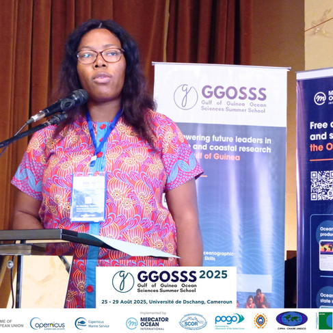 in-situ instruments such as ADCPs, CTDs, drifters, buoys, and ARGO floats, highlighting their evolution and importance for climate, navigation, fisheries, and coastal safety. Dr. Babette C. Tchonang presented the principles of oceanographic satellites and the relevance of SWOT for regional and global research. Finally, Dr. Audrey Delpech (online) introduced ocean numerical modeling through the CROCO model, explaining its core components and coupled modules.